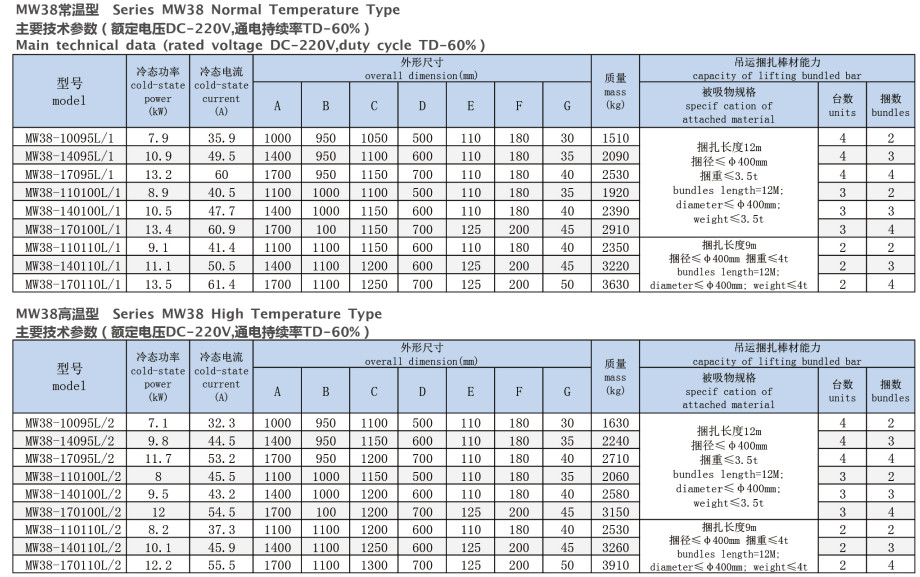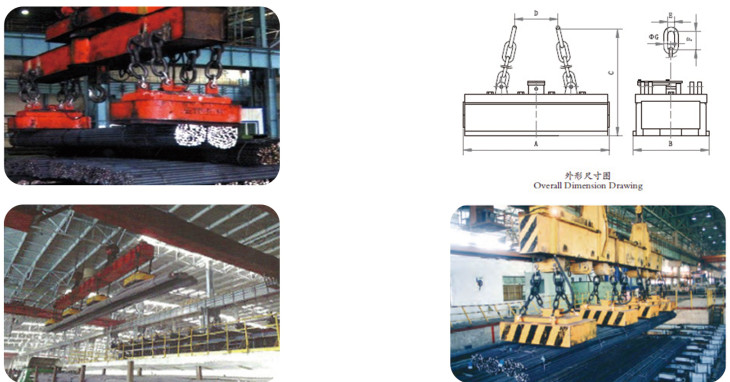 特點:特殊的雙磁極設計,使磁路能穿透多層氣隙。保證了吊運捆扎物料的安全高效。
