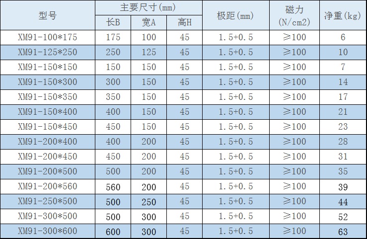 細目密極永磁吸盤的規格型號如: