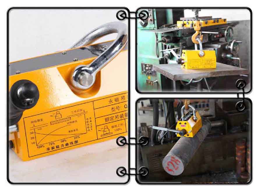 采用高性能磁性材料,使之體積更小,自重更輕,吸持強力。特殊的磁路設計,剩磁幾乎為零。安全系數(shù)高,最大拉脫力是額定起重力的3.5倍左右。手柄開關附有安全鈕,可單手操作,方便安全。起重器底面有“V”型槽設計,可起吊相對應的圓鋼、鋼板。不用電,磁力長久不衰,使用安全。可在野外作業(yè),廣泛用于鋼材的起吊搬運,平整的機械零部件,及各種磨具的安裝及搬運。